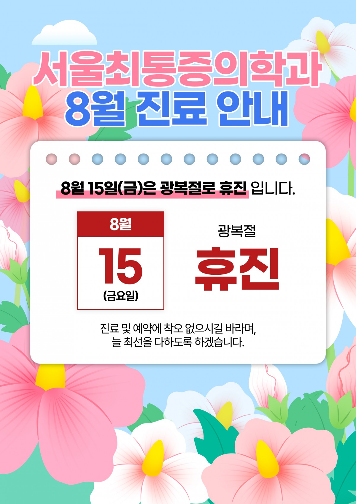 8월 진료안내 페이지 정보 작성자 최고관리자 댓글 0건 조회 77회 작성일 25-10-01 14:52 진료 및 예약에 착오 없으시기 바랍니다. 감사합니다! 목록 프린트 이전글10월 진료안내 다음글 민생회복 소비쿠폰 사용 가능합니다! 댓글목록 댓글목록 등록된 댓글이 없습니다.